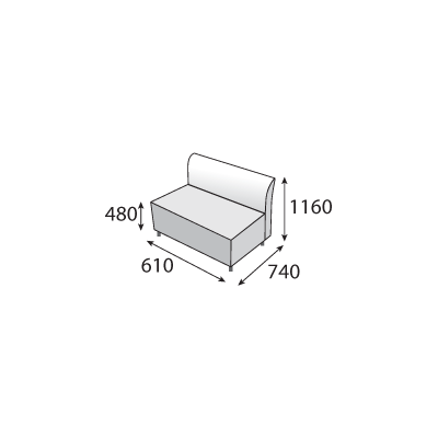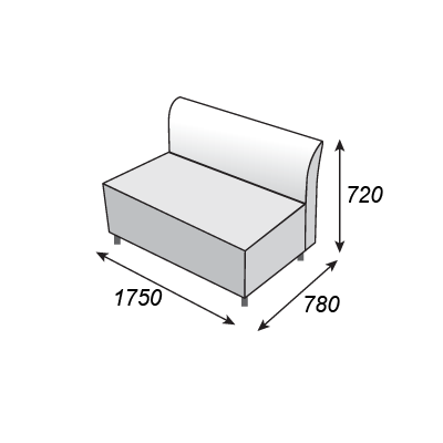 Сиденье: эластичный пенополеуритан, искусственная кожа Вес: 35 кгРазмер, мм: В-1120/В1-440/Ш-1750/Г-840